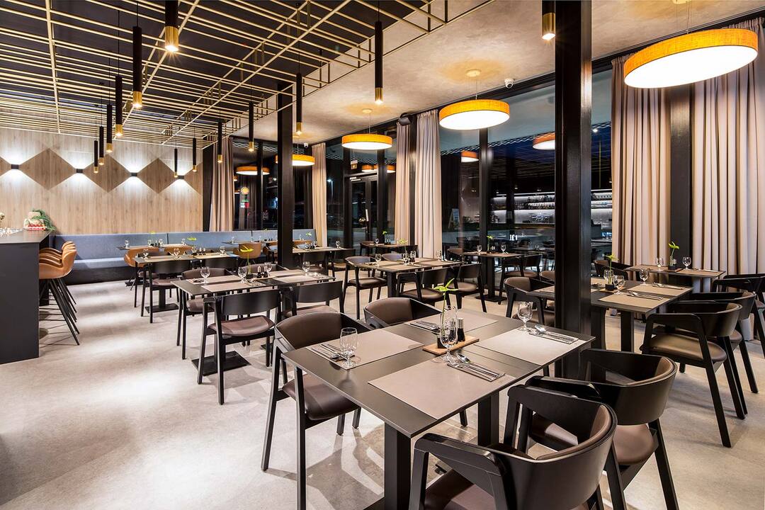 Nadčasová reštaurácia YELLCUISINE ponúka svojim hosťom až 62 miest v štýlovo zariadenom interiéri a ďalších 24 miest na letnej terase.