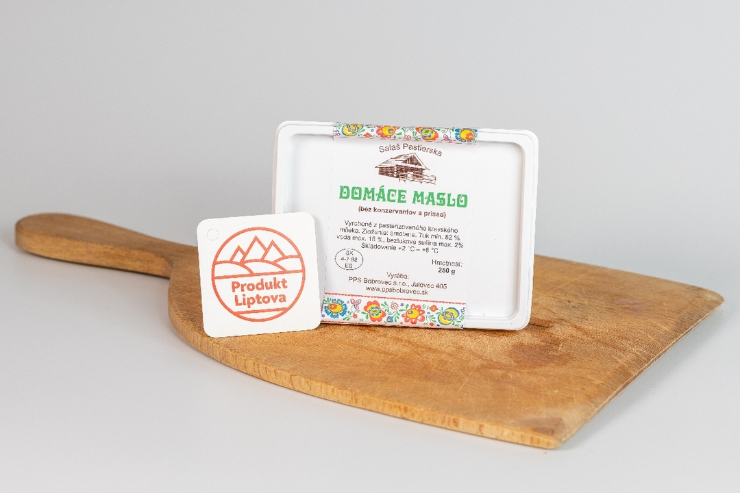 Vyskúšajte vynikajúce maslo skvelej chuti na každý deň. Domáce maslo je bez konzervantov a prísad, vyrobené z pasterizovaného kravského mlieka s podielom tuku min. 82%.