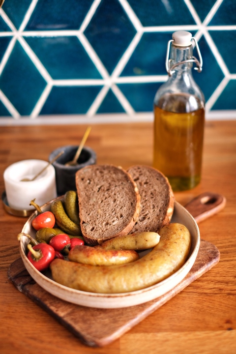 Zloženie: zemiaky, bravčová slanina, bravčová masť, cibuľa, majorán, čierne korenie, soľ, cesnak, hovädzie alebo bravčové črevá, krupicová múka.