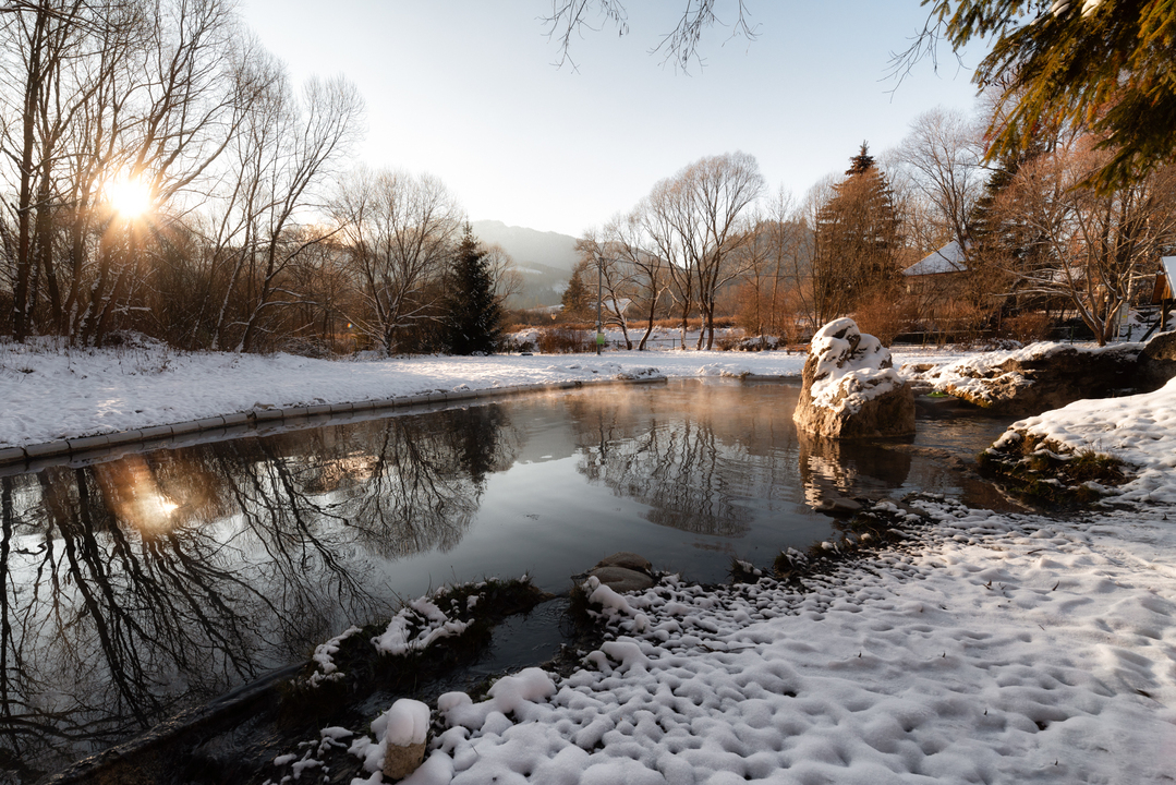 V jeho blízkosti sa nachádza Teplica – pitný minerálny prameň a letné termálne kúpalisko Termal Raj spolu s krytými bazénmi hotela Sorea Máj.
